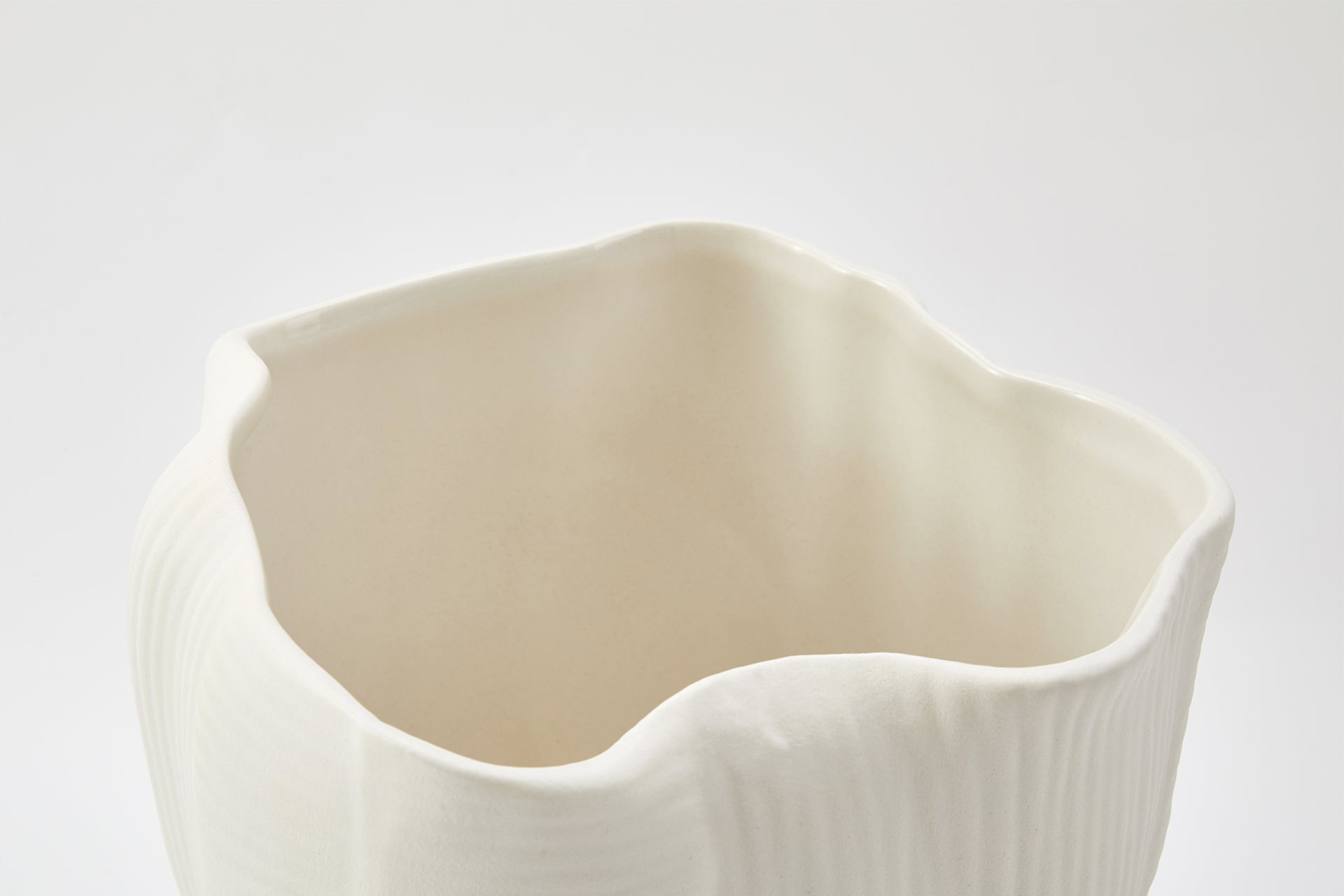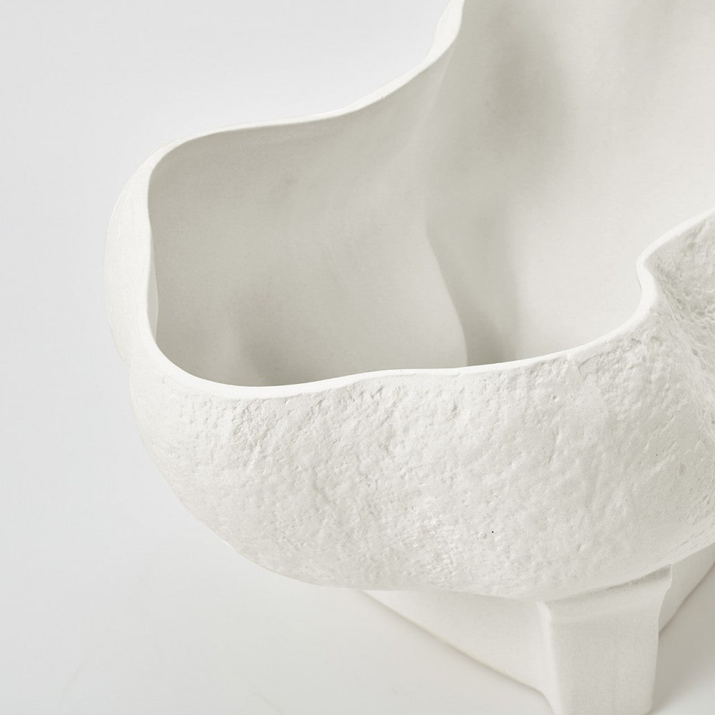 Handmade Ivory Flute Ceramic Bowl - Sculptural Decor Piece