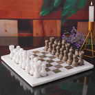Introducing our elegant Marble Chess Set, crafted from dark brown and white marble for a timeless, sophisticated look. Each piece is meticulously hand-carved to perfection, showcasing the natural beauty and unique veins of the marble. The dark brown and white contrast creates a stunning visual appeal, making this set a statement piece for any chess lover or collector.