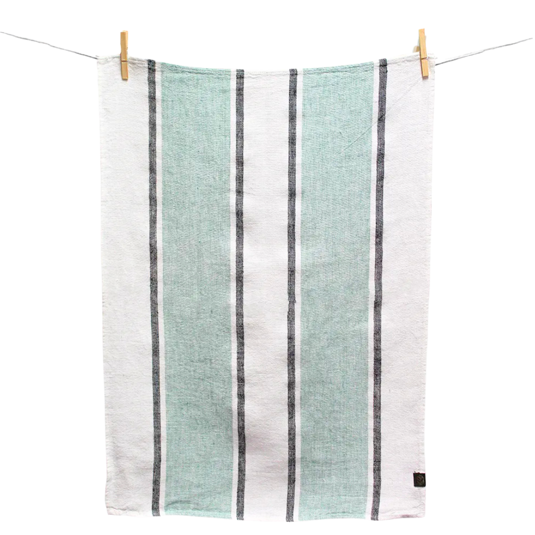 Integrate the effortless feel of European living into your home with the Aquitaine Tea Towels. The simple design combines the clean look that a white background offers with the use of thin charcoal stripes and columns of muted pastel colours to create balance and harmony without sacrificing interest. Made from 100% linen, the Aquitaine Tea Towel is available in 3 colours- Flax, Celadon and Cimarron.
